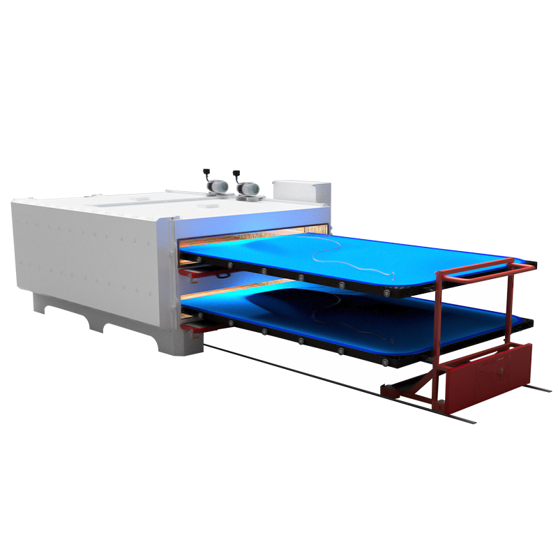 Características especiales: Horno de laminado de dos cámaras para película EVA y película de seguridad AB-AR, peso máximo de 450 kg por bandeja, programable cada bandeja por separado, funciona con bolsas y bombas de vacío, pregunta por modelos adicionales